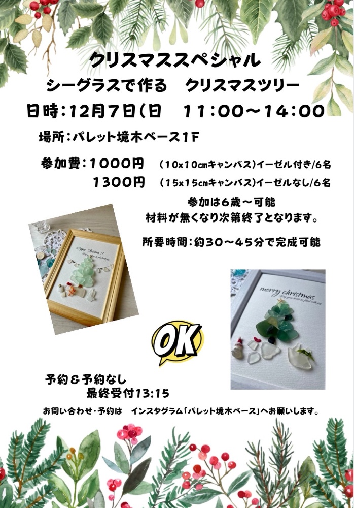 他、出店の12月のスケジュールカレンダーは、11月下旬にパレット境木ベースにて掲示されます。